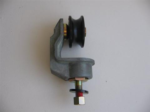 Rodillo de vinilo negro de repuesto montado sobre un soporte G con perno y tuerca.